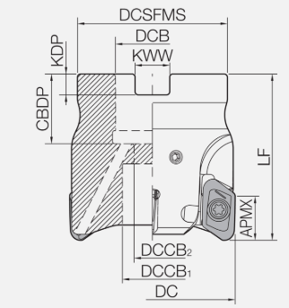 Κεφαλή ορθογώνιας κοπής με 4 φτερά με εσωτερική ψύξη .