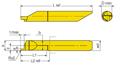Δεξί βίδι εσωτερικής προσώπου καναλιού. Κατάλληλο για τόρνευση σε τρύπα > 6.2mm.