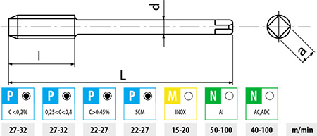 Κολαούζο κατάλληλο για ατσάλι, ανοξείδωτο και μη σιδηρούχα μέταλλα (αλουμίνιο) σε μεγάλες ταχύτητες. Για τυφλές τρύπες.
